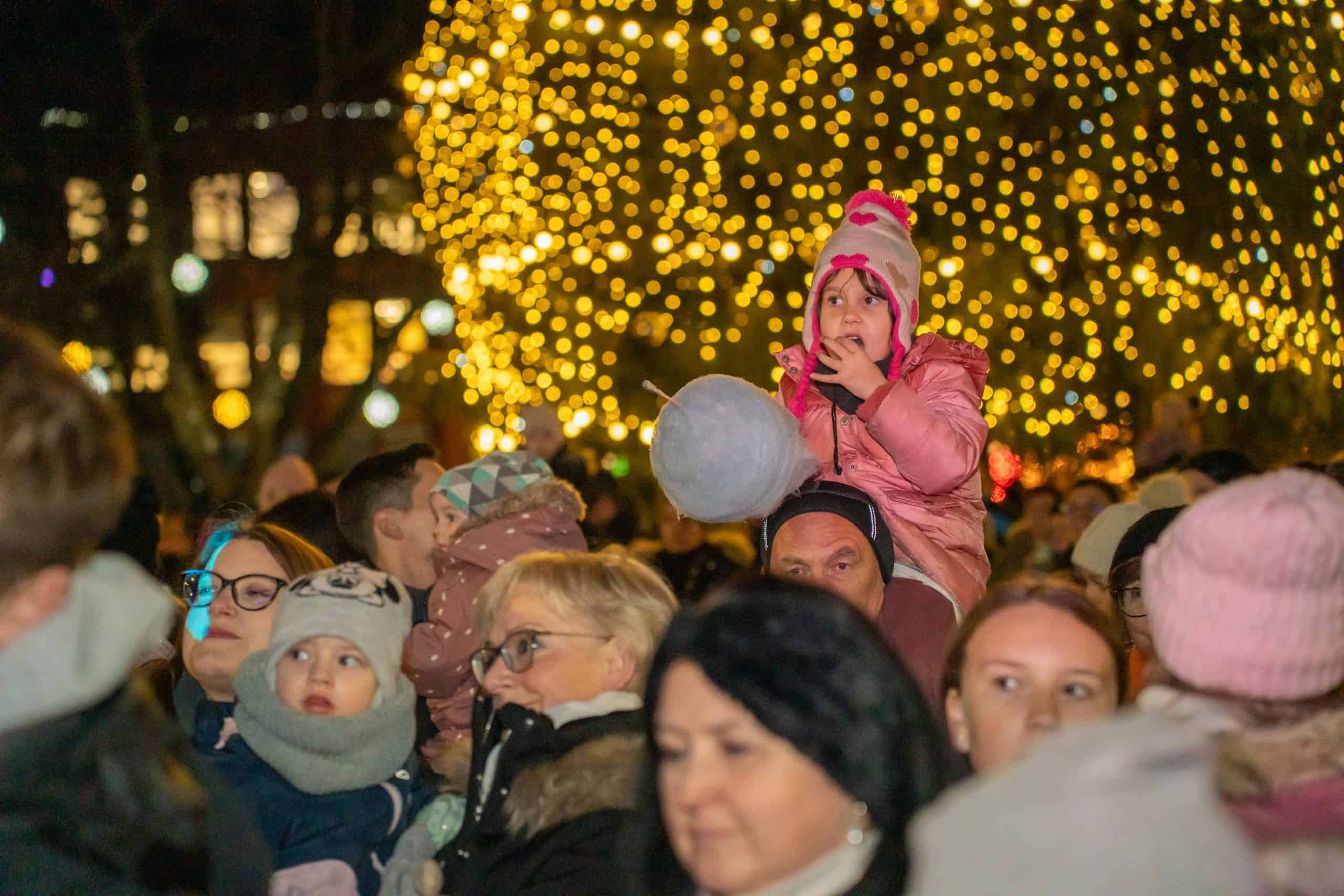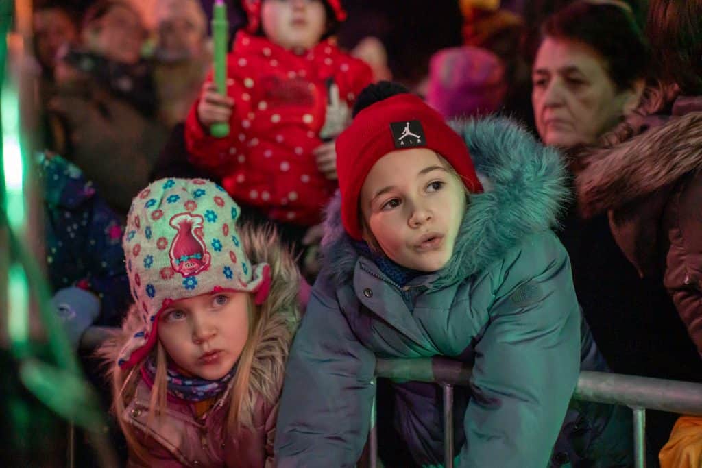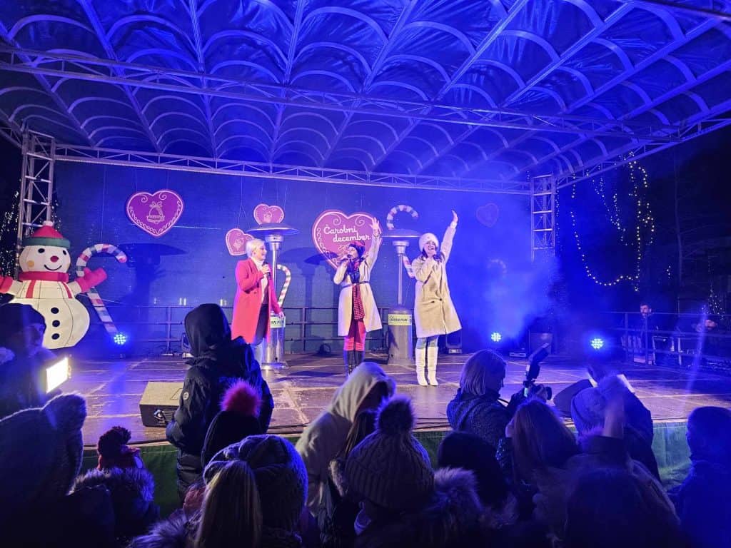 Dedek Mraz je stopil na oder in prijazno pozdravil vse prisotne. Otroci so z njim skupaj zapeli pesmi, kot so “Zima, zima bela” in “Bela snežinka”, ki so še dodatno obogatile dogodek, čeprav snega ni bilo v živo, so otroški glasovi poskrbeli za pravo zimsko vzdušje.