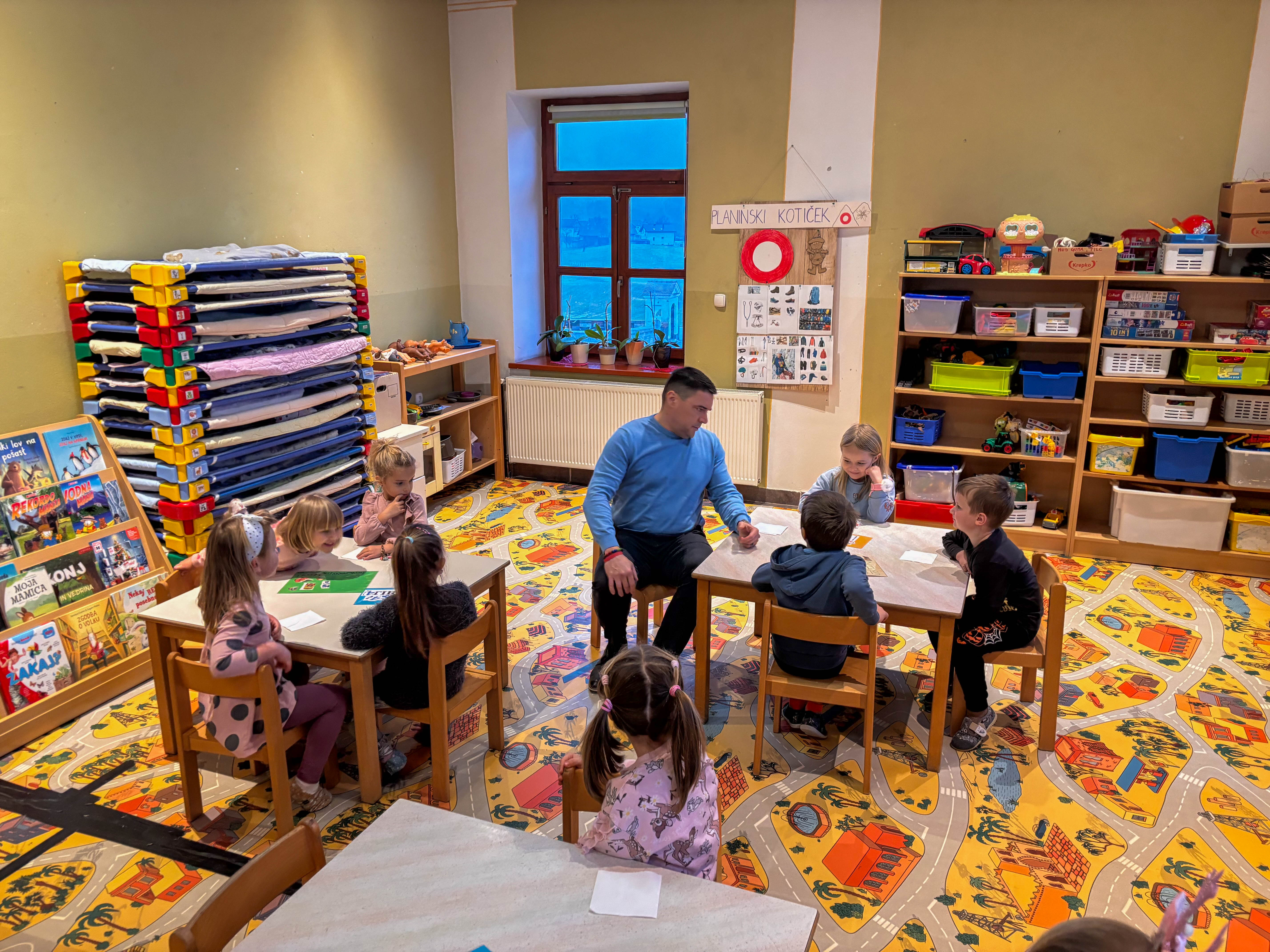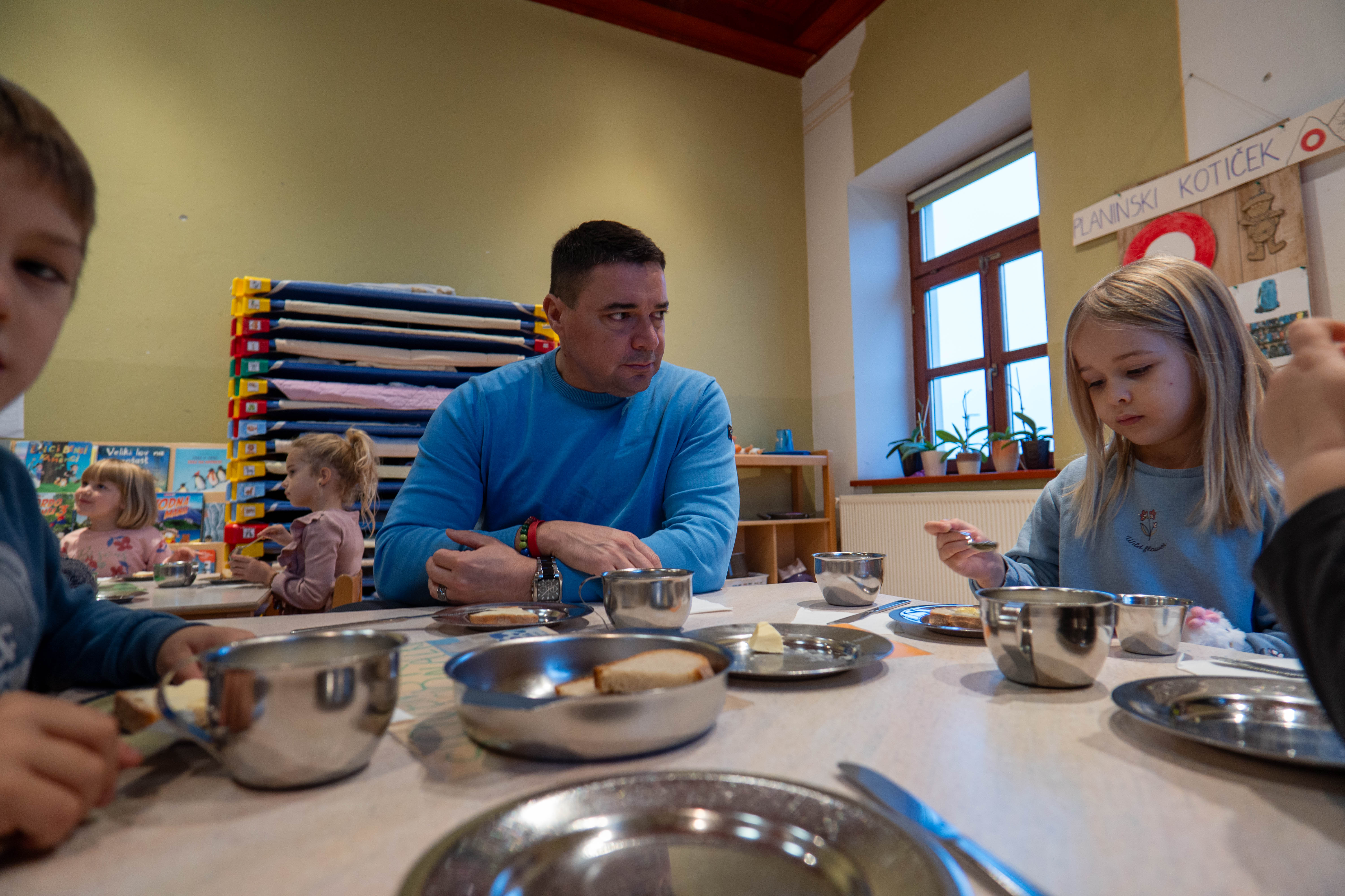 V šentiljski enoti Vrtca Velenje se je otrokom pri zajtrku pridružil župan Mestne občine Velenje Peter Dermol.
