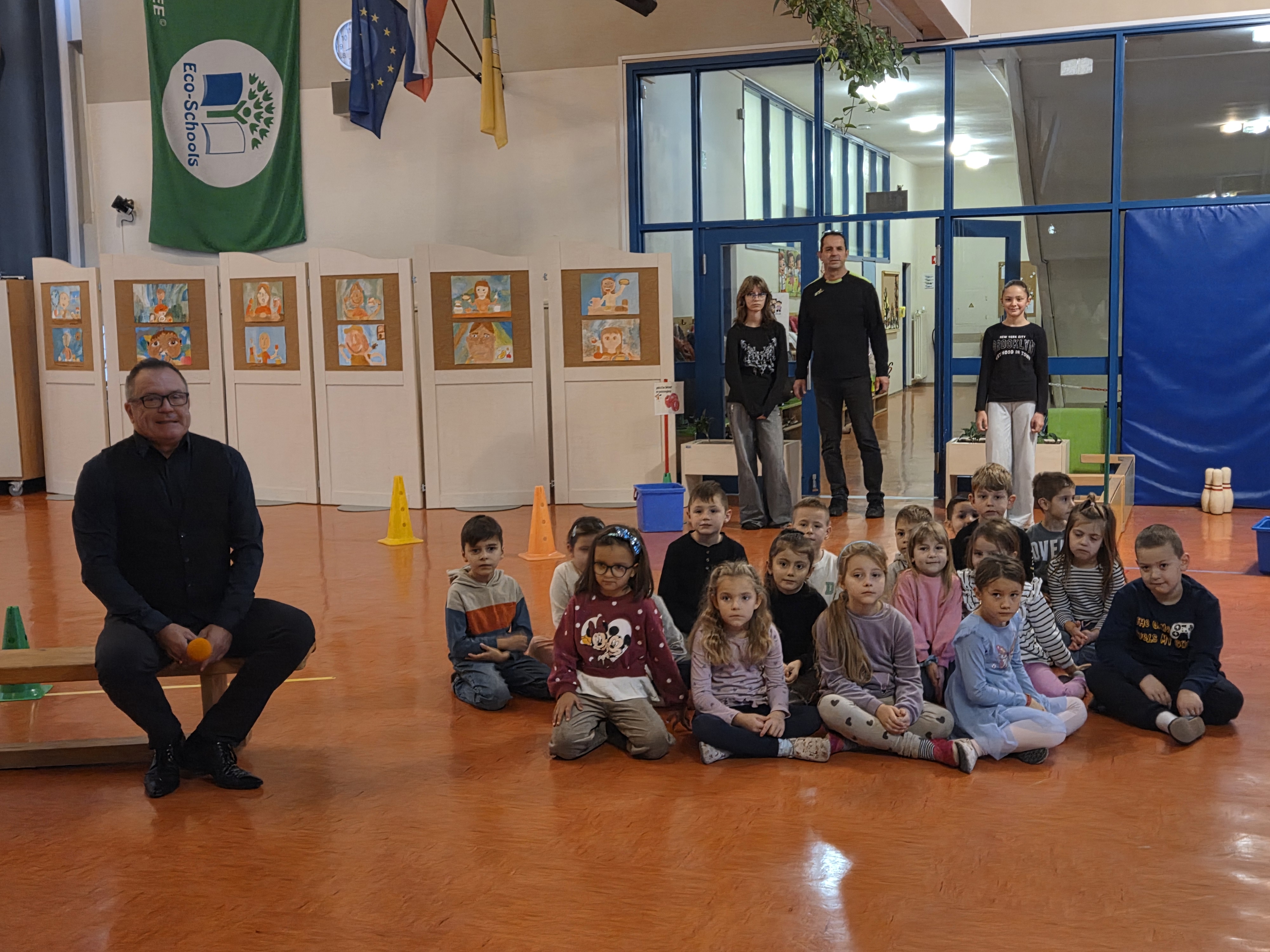 Šolarji so skupaj z učitelji gostom pripravili tudi poseben poligon dobrot, ki so sestavni del slovenskega tradicionalnega zajtrka.
