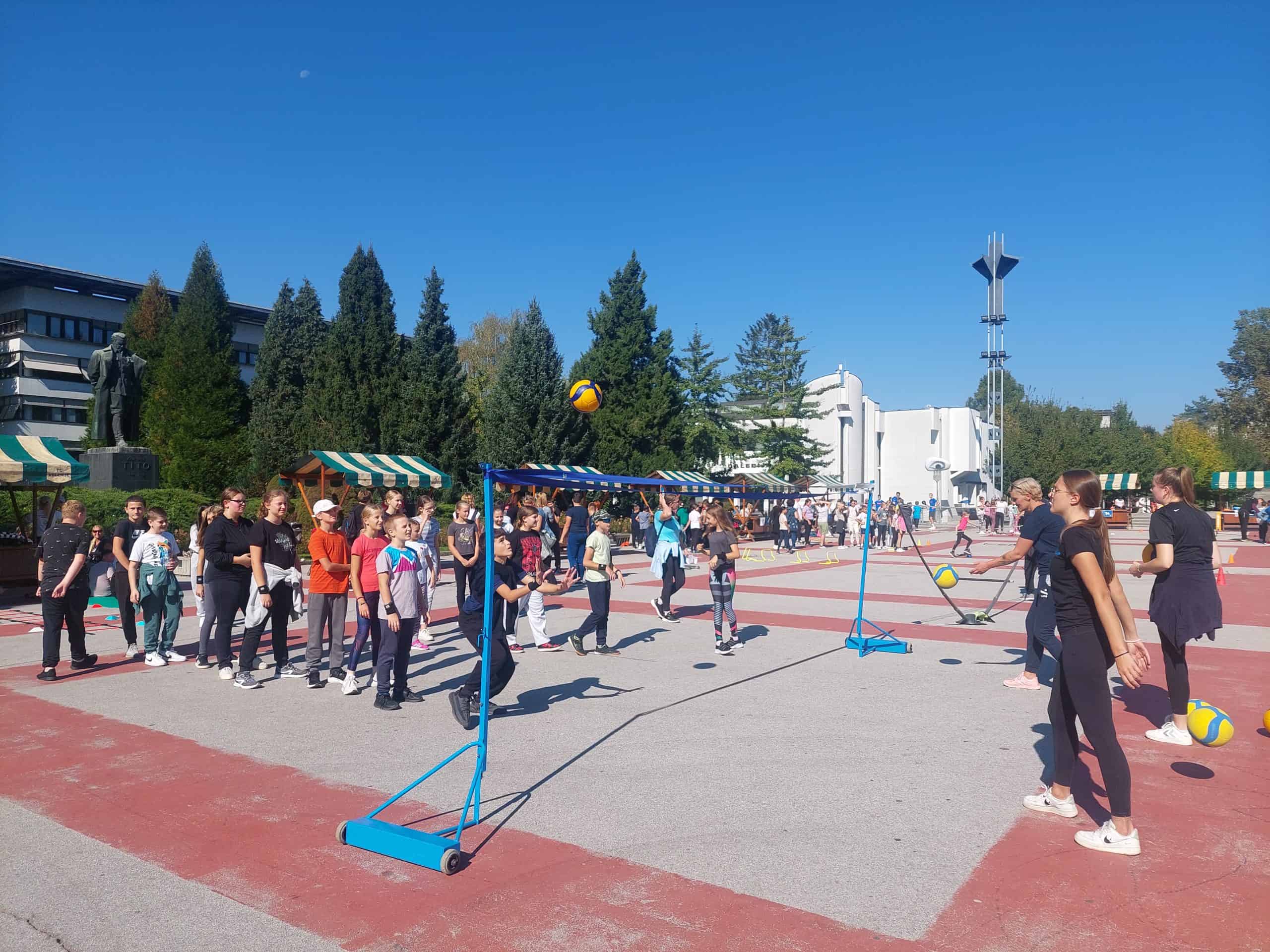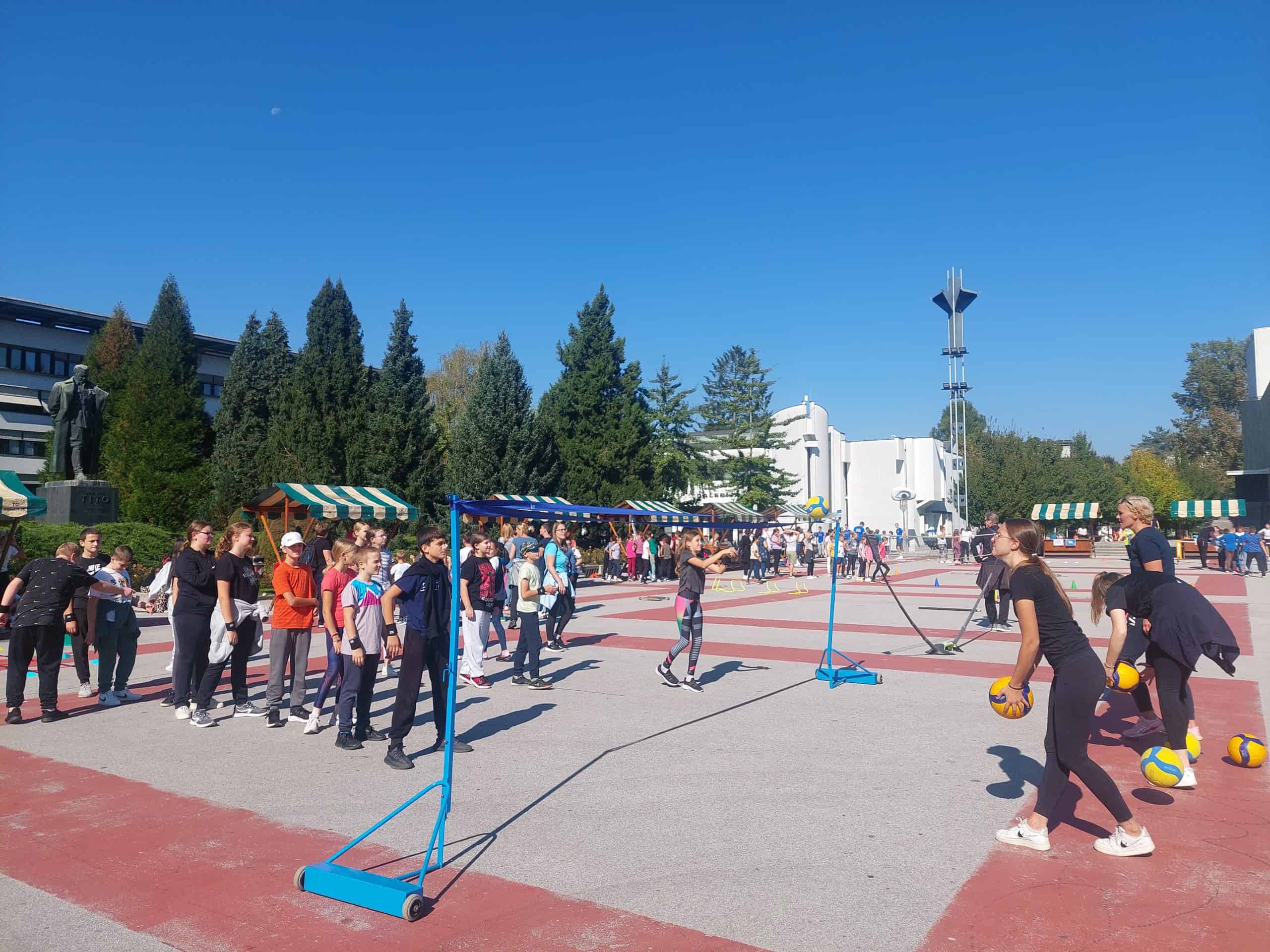 Na Titovem trgu je 20 športnih klubov in društev pripravilo različne športne aktivnosti za predšolske otroke in osnovnošolsko mladino, ki sta jih pozdravila predsednik Športne zveze Velenje Bogdan Plaznik in podžupanja MOV Aleksandra Vasiljević.