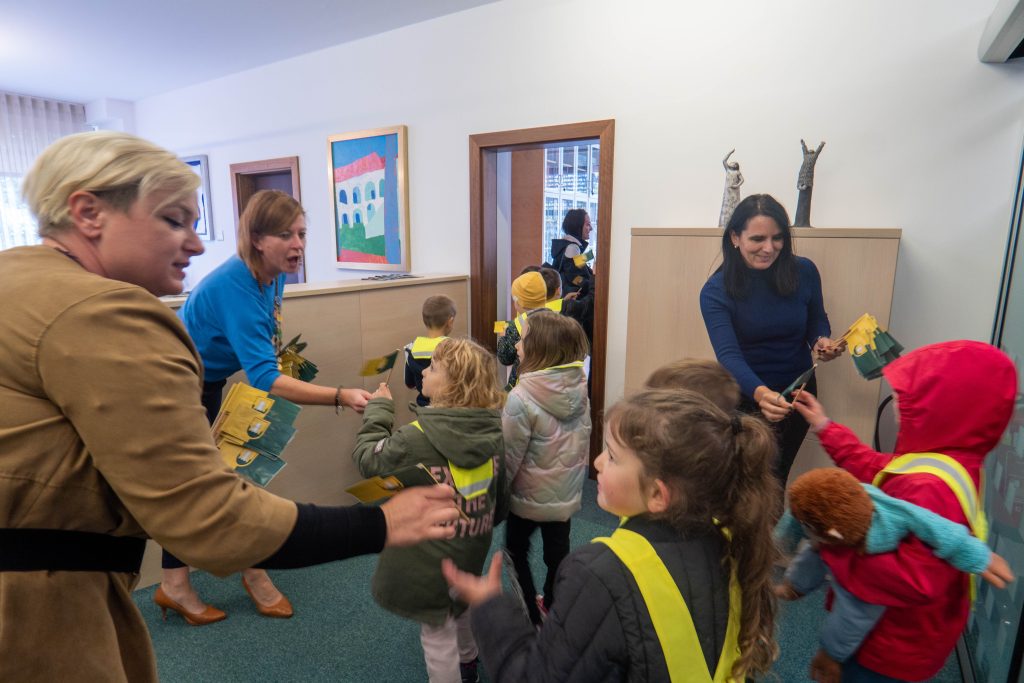 V tednu otroka, ki letos poteka od 6. do 12. oktobra, župan Mestne občine Velenje Peter Dermol v prostorih mestne hiše sprejema vse velenjske prvošolce in petošolce.