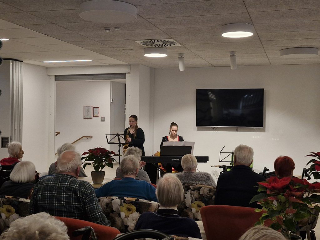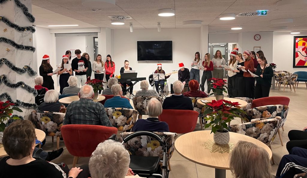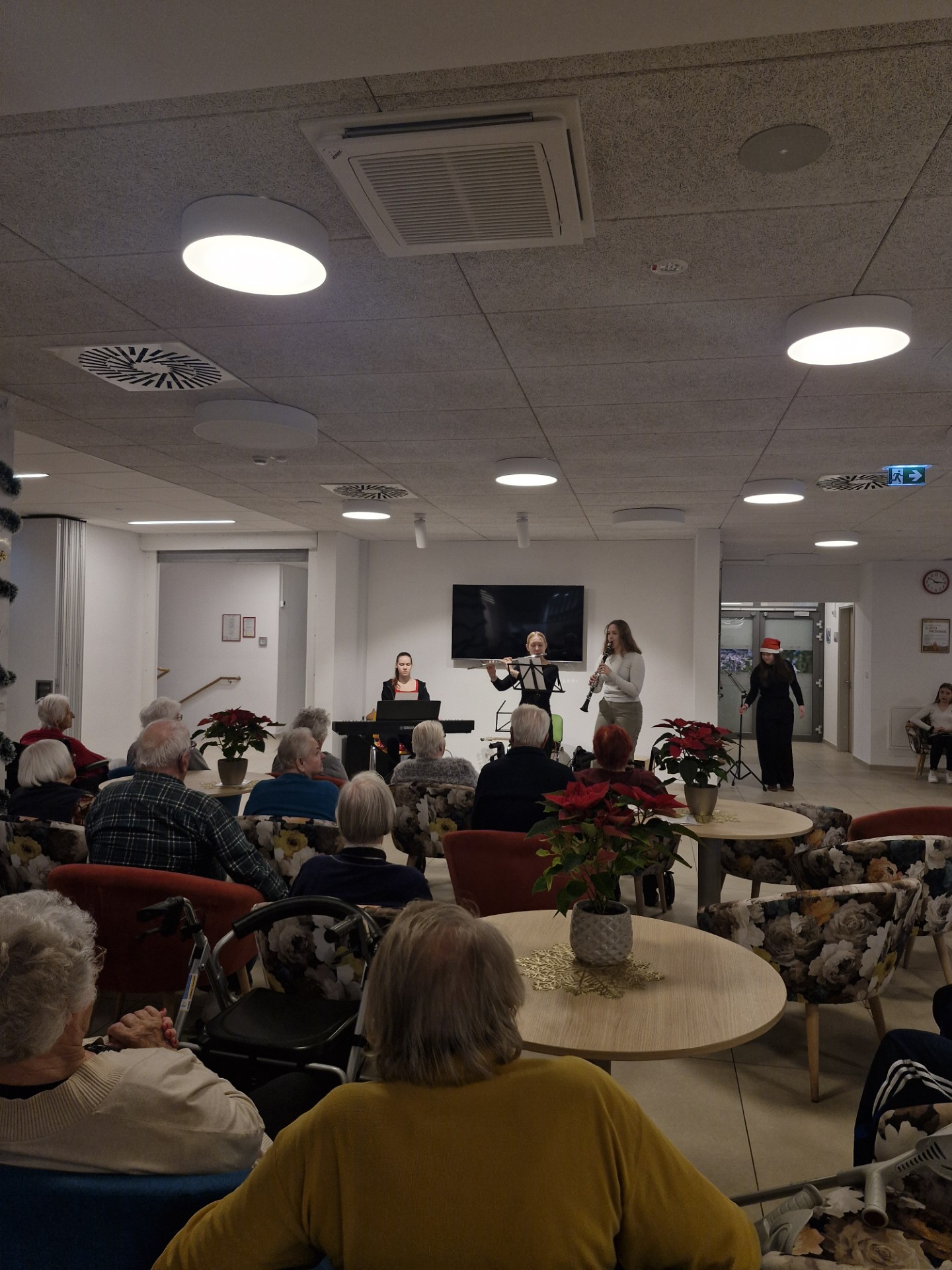 Praznični obisk je bil v prvi vrsti namenjen sproščenemu medgeneracijskemu druženju. Dijaki glasbeniki so program začeli s krajšimi komornimi glasbenimi točkami, ki so ustvarile prijetno in umirjeno vzdušje. Glasba je hitro postala povezovalni most med mladimi in starejšimi, kar se je še posebej pokazalo pri skupnem petju slovenskih popevk in prazničnih pesmi, med katerimi so zazvenele Mlade oči, Orion, Na božično noč, Silvestrski poljub ter Sveta noč. Skupno petje je v prostor prineslo občutek domačnosti, topline, srčnosti in iskrenega veselja.