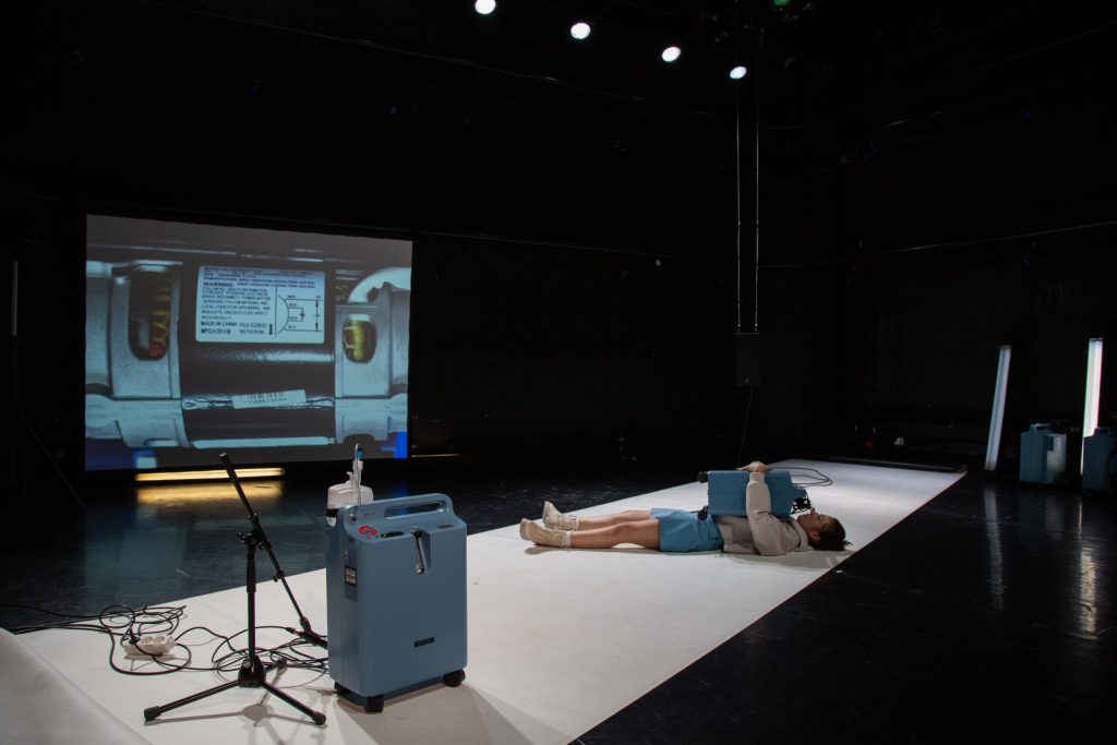 Čeprav je dihalni stroj v družinskem življenju prisoten zaradi zdravstvenih okoliščin, Bojana skozi gib in uprizoritev odpira vprašanje osebnega odnosa do tehnologije, ki neposredno vpliva na njeno vsakdanje življenje.