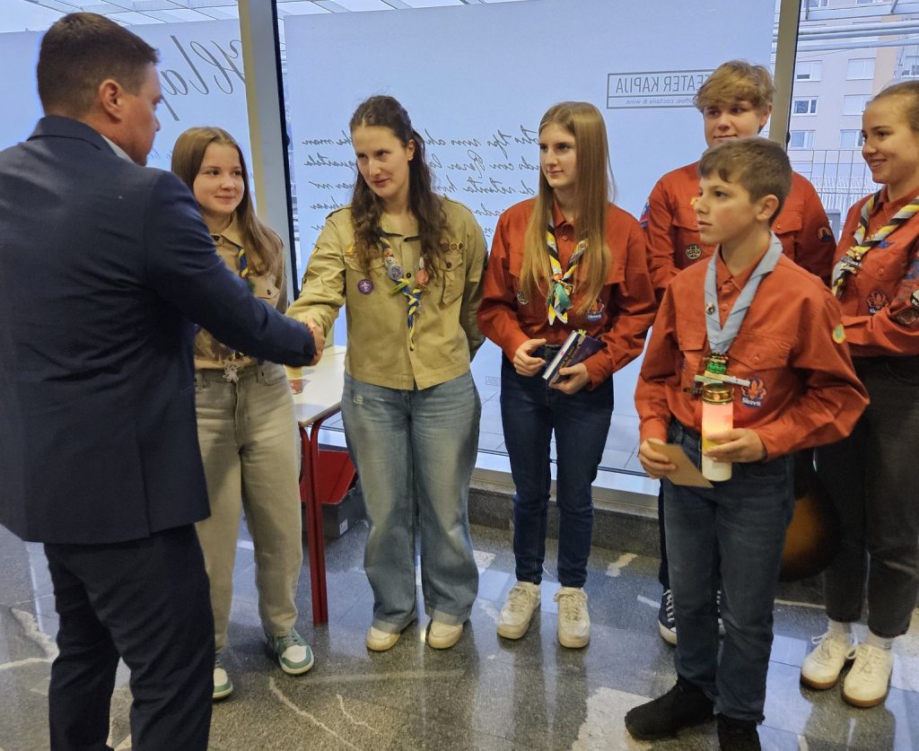 Luč miru iz Betlehema, ki je prišla v Slovenijo v začetku decembra, predstavniki skavtov v teh dneh predajajo tudi najvišjim predstavnikom oblasti. Danes so jo prinesli v državni zbor, kjer je skavte sprejela predsednica DZ Urška Klakočar Zupančič, v torek pa jo bodo nesli tudi do predsednice republike Nataše Pirc Musar.