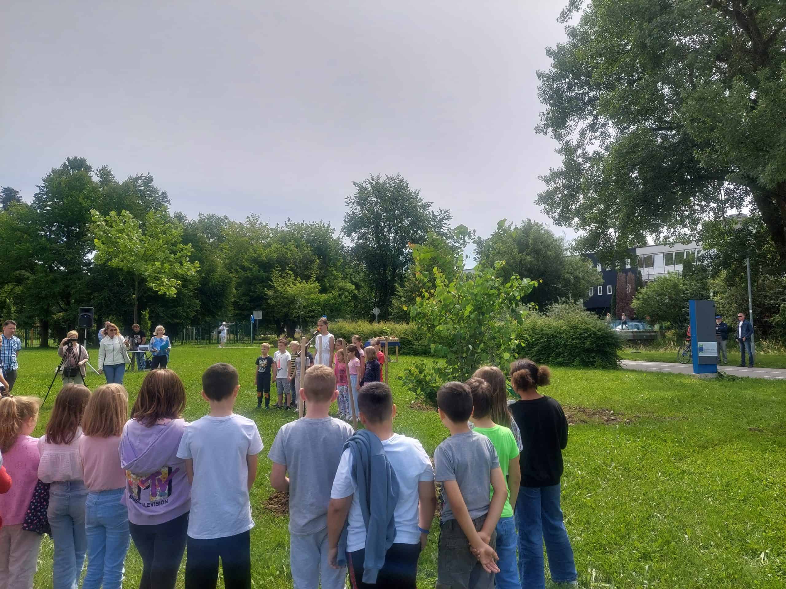 Učence in ostale zbrane je nagovorila tudi arboristka, Nataša Dolejši. Številka tri je pri drevesih zlato število, je povedala. »Pri ureditvi zelenih mest se sledu načelu, da bi bila v mestu posajena 3 drevesa za vsak dom, na zelenih površčinah naj bi bila 30-odstotna pokritost s krošnjami, vsak prebivalec mest pa naj bi imel največ 300 metrov do prve večje zelene površine,« je pojasnila.
