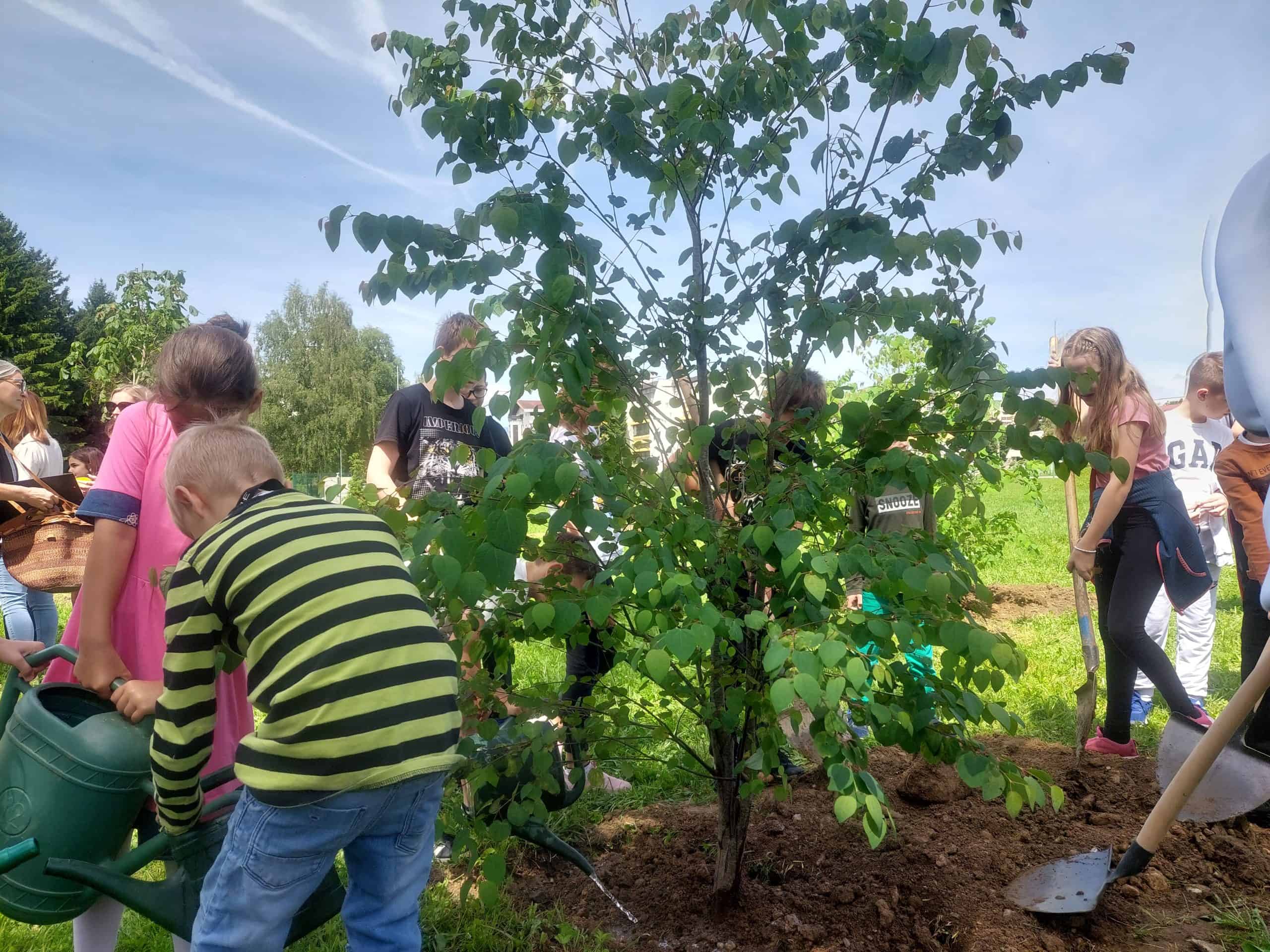 Na zelenici med osnovnima šolama ter ob Paki so zasadili 5 lipovcev, 7 japonskih cercidifilov, 2 omoriki, 4 bore, 2 magnoliji, 6 tulipanovcev, 5 srebrnih lip, 2 javorja, 3 gloge, 2 vrbi, 3 stebraste gabre in 3 divje kostanje.