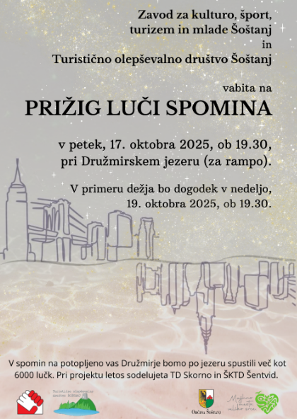 Ob jezeru, ki v sebi nosi zgodbo potopljene vasi Družmirje, bosta nebo in gladina jezera zažarela v odsevu več kot 6000 plavajočih lučk. Vsaka od njih bo nosila droben košček spomina, zahvale in tihe želje. V soju luči bo Prižig lučk obudil zgodbo kraja, ki ga ni več – a še vedno živi v srcih ljudi.