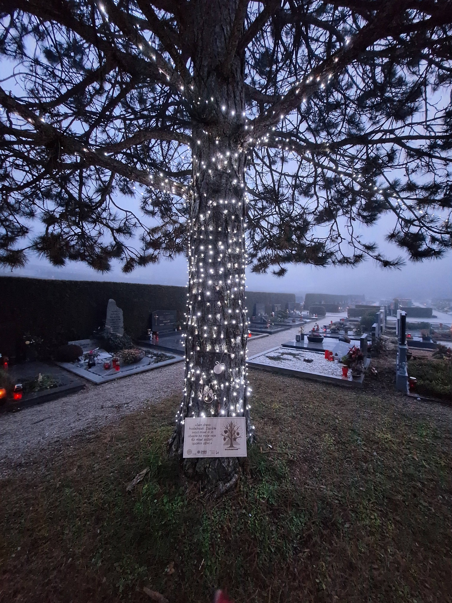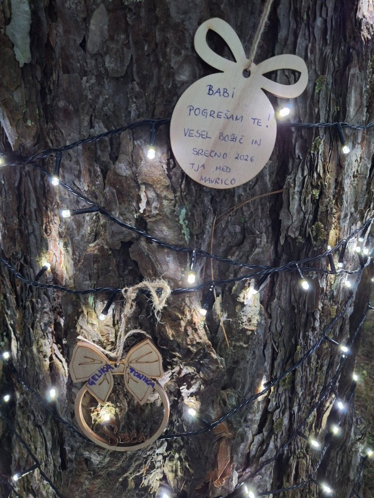 Obiskovalci pokopališča Podkraj bodo lahko med 15. decembrom in 15. januarjem 2026 na lesen ali drug trajnostni okrasek zapisali misel, spomin ali zahvalo ter ga obesili na osvetljena borovca - prepoznavna simbola velenjskega pokopališča. Borovca (odsek)bosta v tem času postala prostor miru, topline in povezanosti.