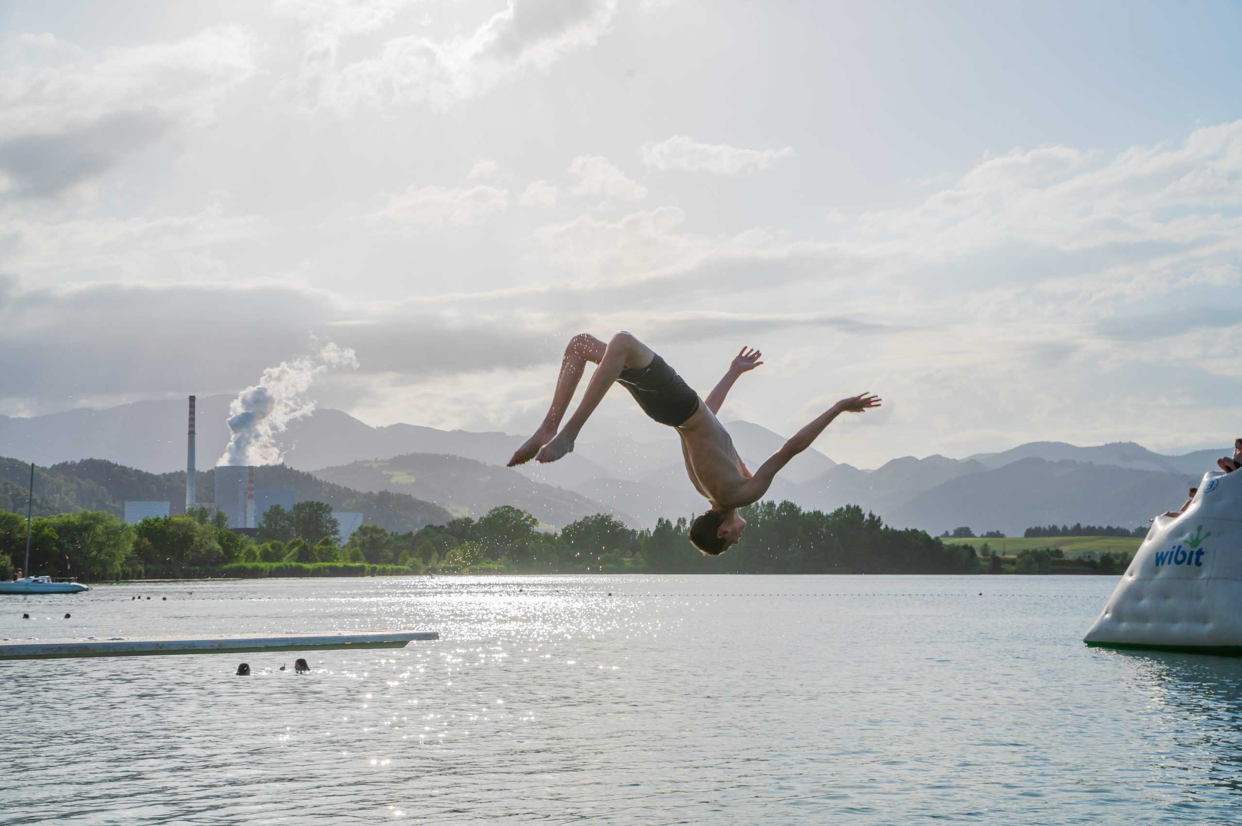 Veliko ljudi je zaplavalo in s pomola tudi dobesedno skočilo v poletje. Na vodi so bila postavljena tudi napihljiva igrala, katera so popestrila vodne aktivnosti.