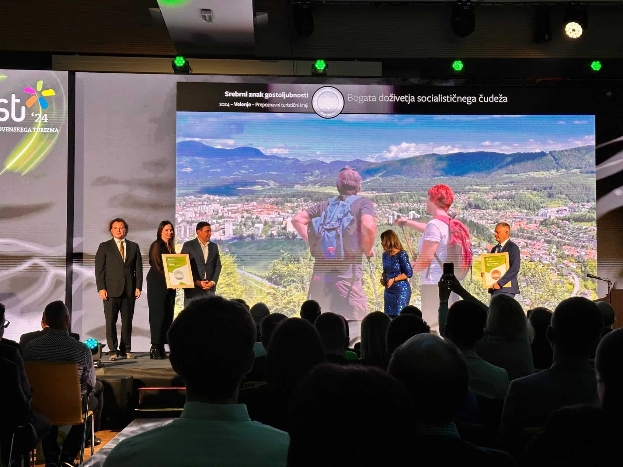 Staro Velenje prejelo zlati znak gostoljubnosti v kategoriji Zgodovinska jedra, mesto Velenje pa srebrni znak v kategoriji Prepoznavni turistični kraji v Sloveniji. Priznanja sta prevzela župan Mestne občine Velenje Peter Dermol in direktorica Zavoda za turizem Šaleške doline Alenka Kikec.