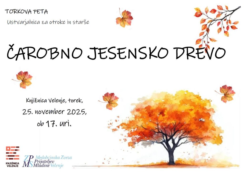 Na ustvarjalni delavnici si bodo otroci s pomočjo staršev, izdelali jesensko čarobno drevo z živahnimi, pisanimi listi, ki bo v dom prineslo toplino jesenskih barv tudi pozimi, ko bo veje dreves krasila bela odeja.