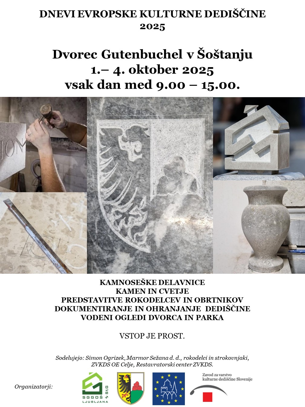 Vsak dan med 1. in 4. oktobrom v dvorcu tako potekajo kamnoseške delavnice, kjer mladi kamnoseki iz SGGOŠ.StG ustvarjajo replike kamnitih elementov in prikazujejo svoje znanje. Obiskovalci lahko tudi sami poskusite klesati črke in simbole ter spoznate, kako nastaja delo, ki ohranja našo kulturno dediščino. Vsak dan pripravijo tudi predstavitev izdelkov, srečanje z mojstri in priložnost za pogovor o starih rokodelskih znanjih.