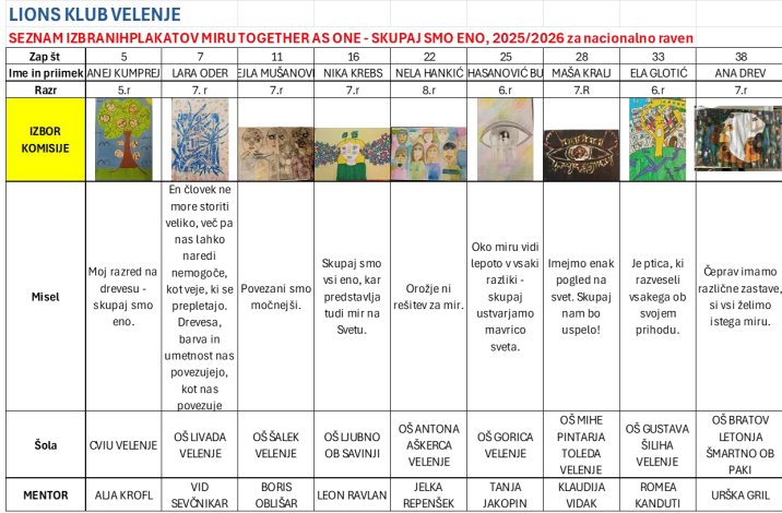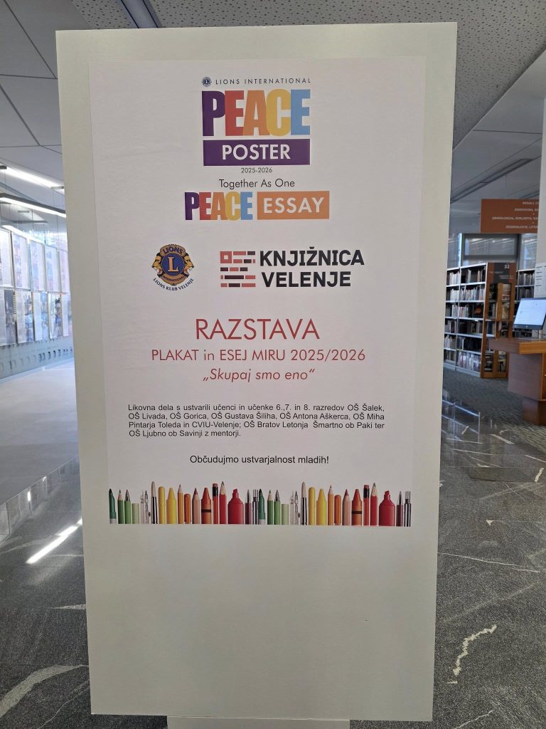 Natečaj Plakat miru se na svetovni zvezi Lions klubov odvija že od leta 1988, v Sloveniji slabih 30 let, v LK Velenje pa 24 let s kratko prekinitvijo v času korone.