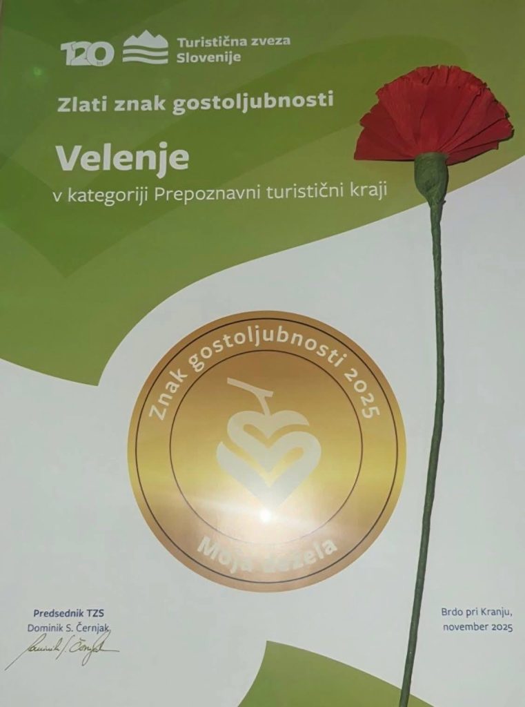 Velenje je znova prejelo ZLATI znak gostoljubnosti,v kategoriji prepoznavnih turističnih krajev