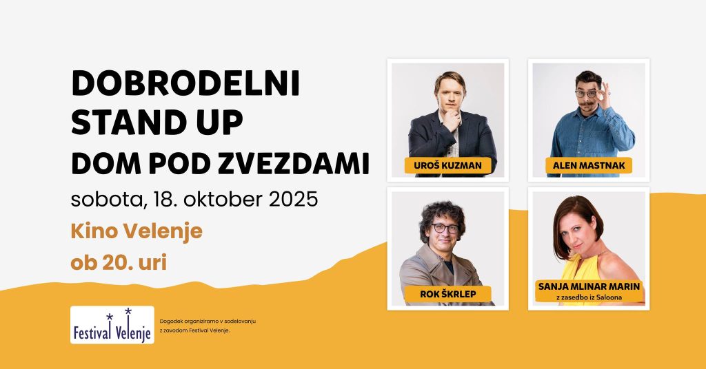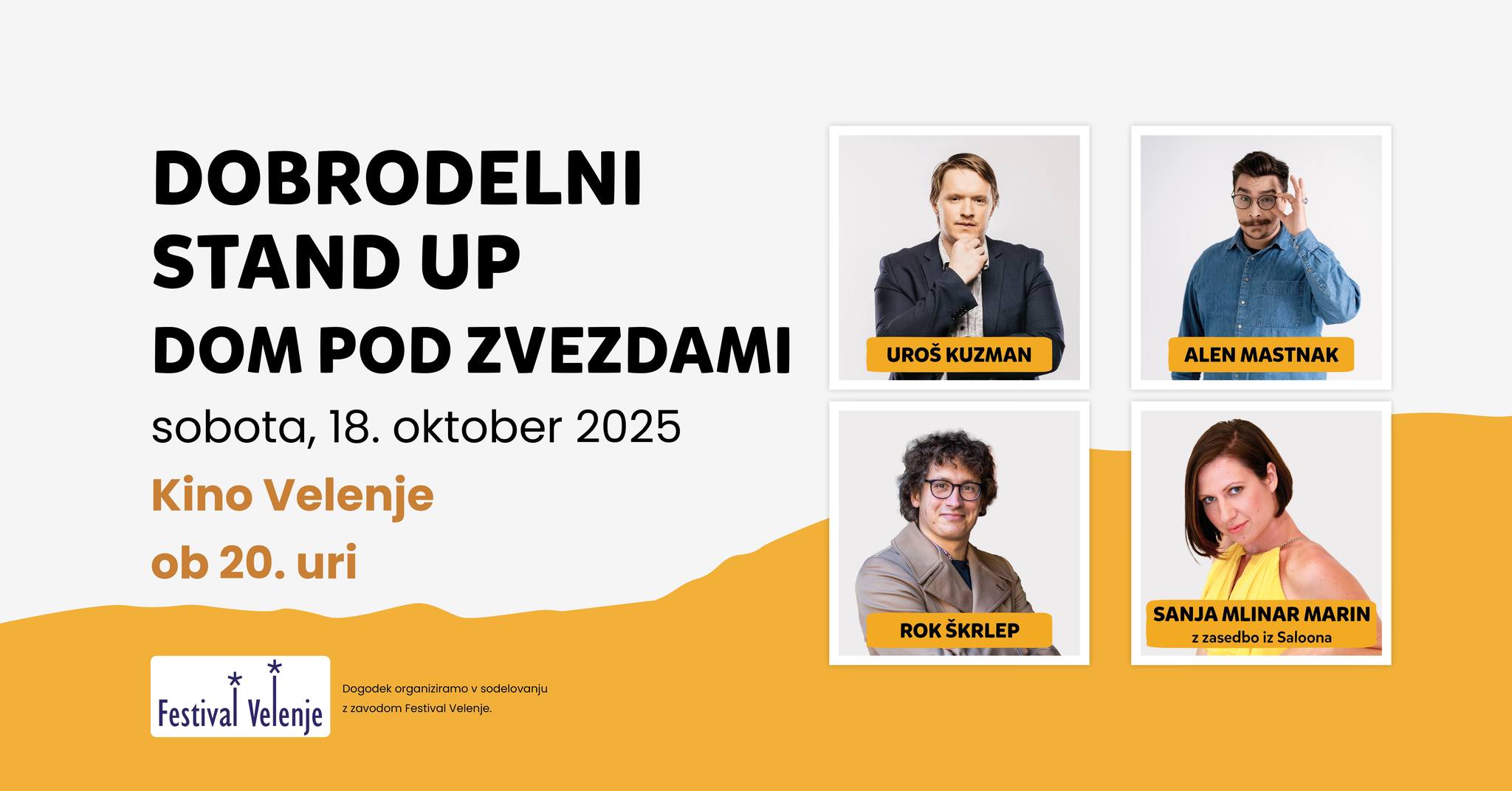 Sobota, 18. oktober, 20.00, velika dvorana Kina Velenje: Dobrodelni stand up Dom pod zvezdami