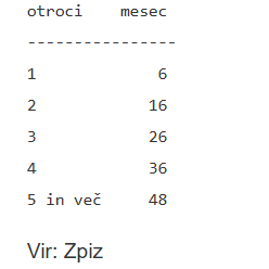 STA objavlja tabelo s podatki, za koliko mesecev se zniža starost zaradi skrbi za enega, dva, tri, štiri in pet ali več otrok v letu 2026.