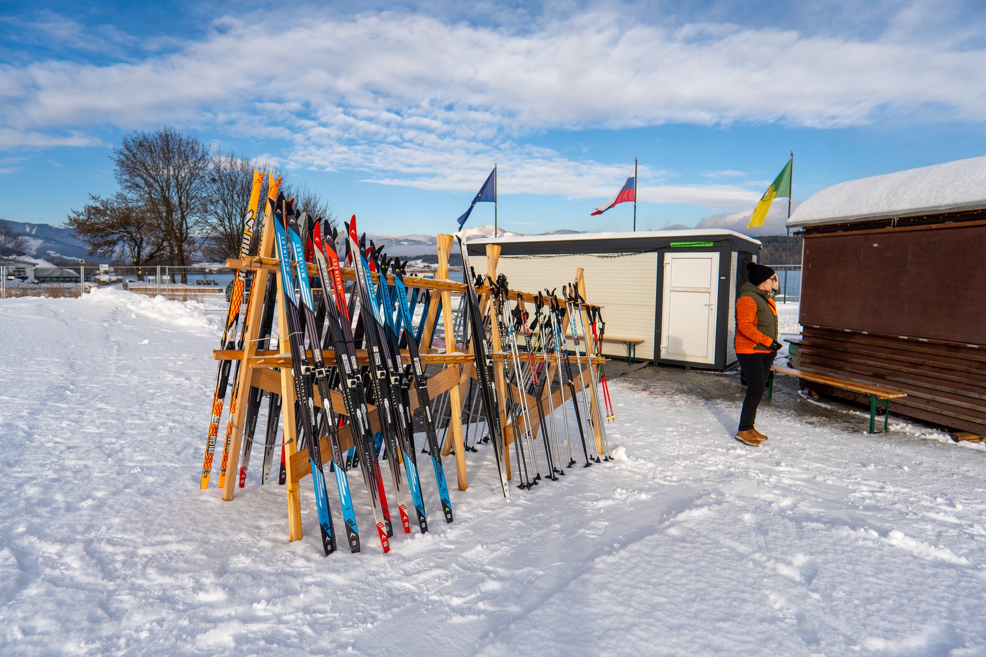 Na voljo je tudi izposoja celotne opreme (čevlji, smuči, palice) po ceni 10 evrov, za družine 25 evrov. Člani Smučarskoskakalnega kluba Velenje obiskovalcem pomagajo pri prvih korakih in svetujejo glede pravilne ter varne uporabe proge.