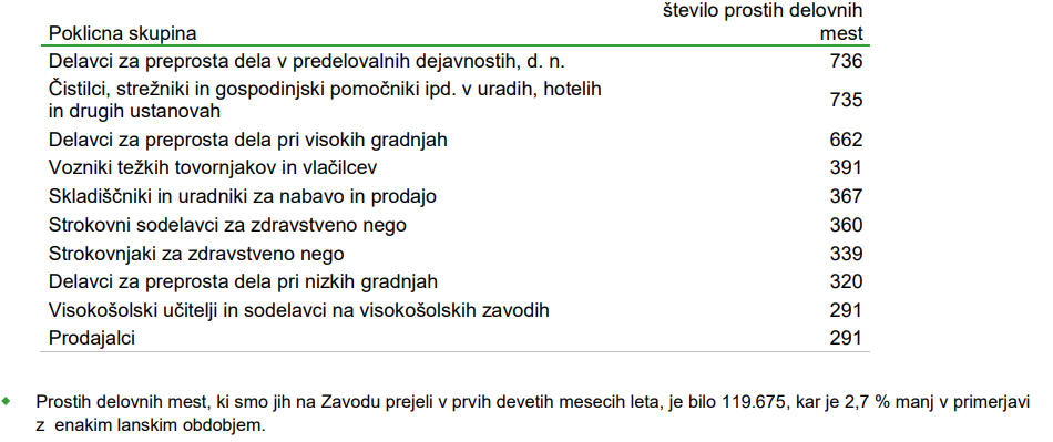 Septembra je Zavod za zaposlovanje iz evidence odjavil 6.206 brezposelnih oseb; 4.211 oseb zaposlilo ali samozaposlilo, kar je kar 104,9 % več kot avgusta in 5,1 % več kot v enakem obdobju lani.