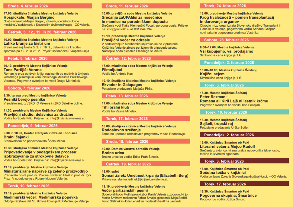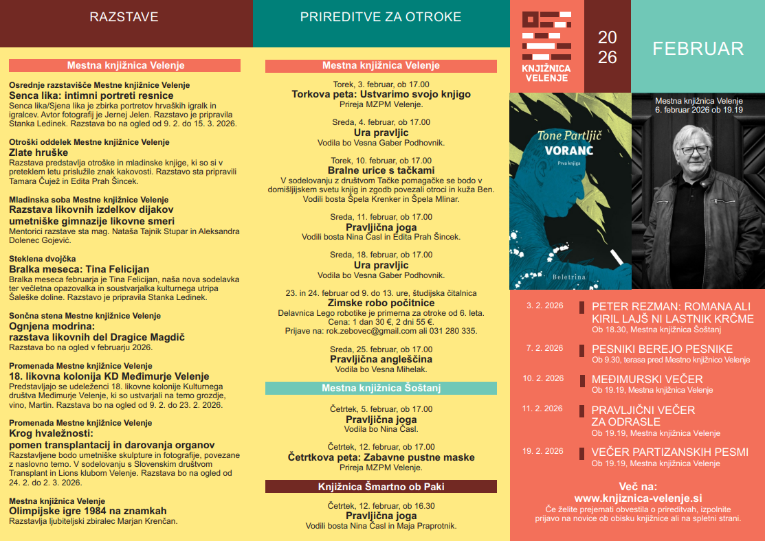Delavnica je za udeležence brezplačna. Obvezne prijave na info@knjiznica-velenje.si.