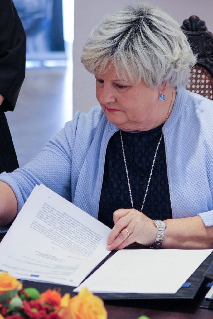 Podžupanja MOV Darinka Mravljak in ministrica za kulturo dr. Asta Vrečko sta včeraj podpisali pogodbo o sofinanciranju projekta Ureditev rondele na Velenjskem gradu.