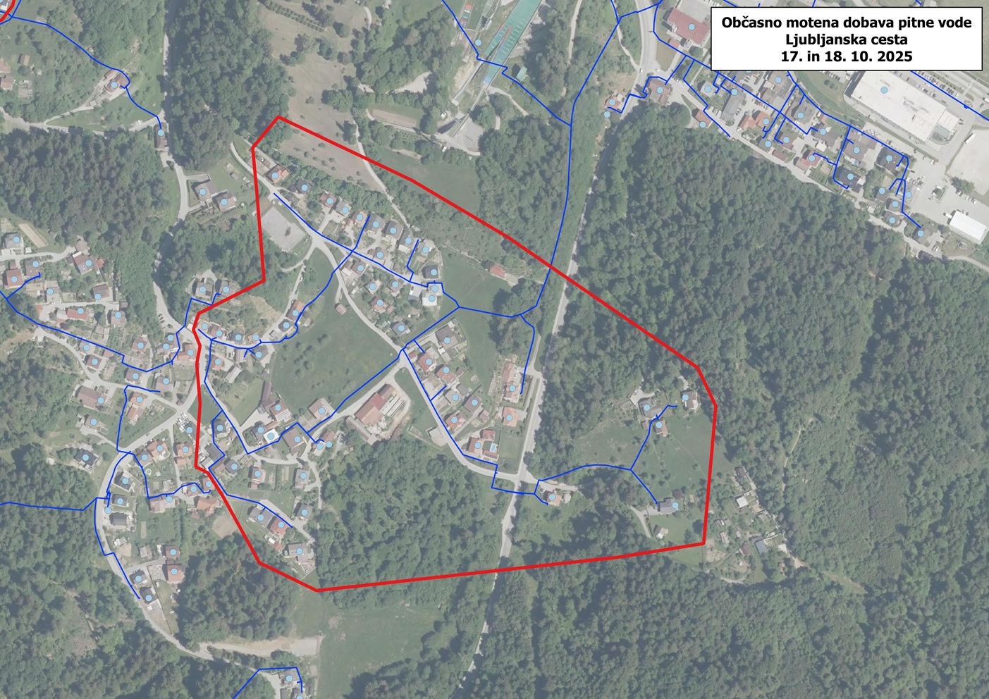 Komunalno podjetje Velenje obvešča uporabnike na območju Ljubljanske ceste v mestni občini Velenje, da bo v petek, 17. 10. 2025, in v soboto, 18. 10. 2025, med 7. in 16. uro občasno motena dobava pitne vode zaradi nujnih vzdrževalnih del na javnem vodovodu.
