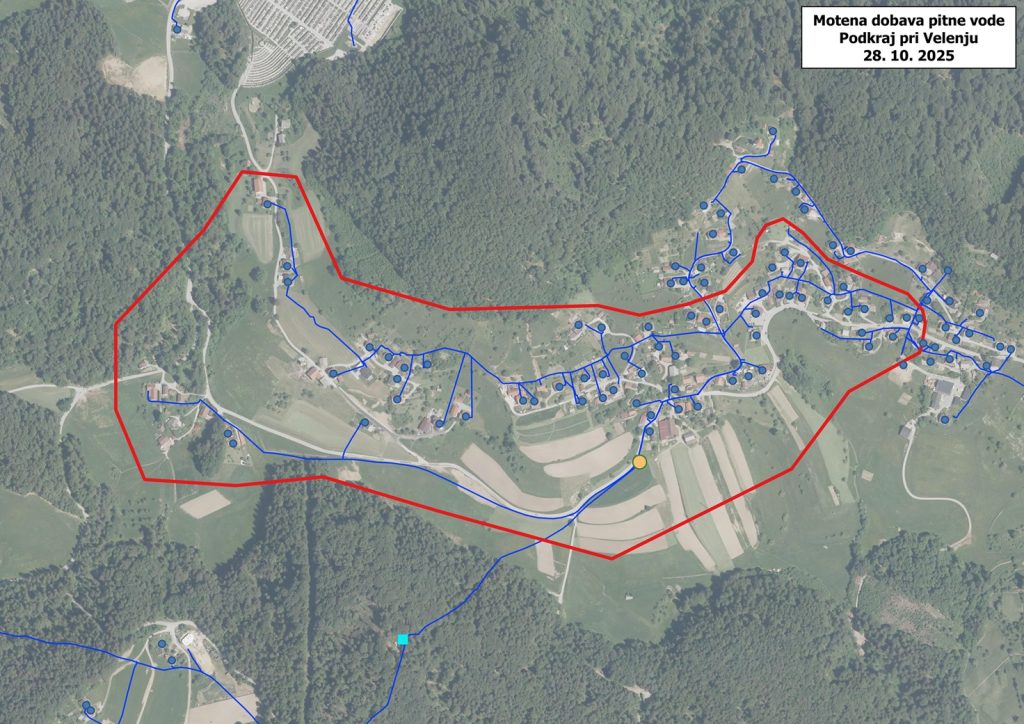Komunalno podjetje Velenje obvešča uporabnike predela naselja Podkraj pri Velenju, da bo v torek, 28. oktobra, med 8. in 14. uro prekinjena ali motena dobava pitne vode zaradi nujnih vzdrževalnih del na javnem vodovodu.