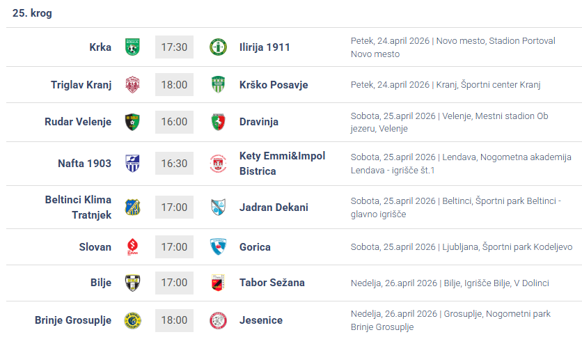 Sobotno popoldne bo v Velenju postreglo z obračunom med Rudarjem in Dravinjo. Jeseni so se zmage veselili Konjičani (1:0), ki so se minuli vikend iz Ljubljane vrnili s polnim izkupičkom - z 2:1 so ugnali Slovan in vknjižili šesto zmago sezone. Eno zmago več imajo na svojem računu po 24 krogih Velenjčani, ki na zadnjih treh tekmah ne poznajo poraza.