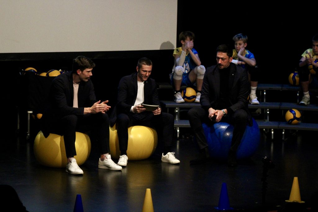 Beseda je pripadla še Dejanu Vinčiću in Janu Klobučarju, ki sta v pogovoru z moderatorjem Nikom Lemežem obujala spomine na njune začetke, nasmejala dvorano s kakšno prigodo s parketa ter mladim odbojkarjem namenila nekaj spodbudnih besed.