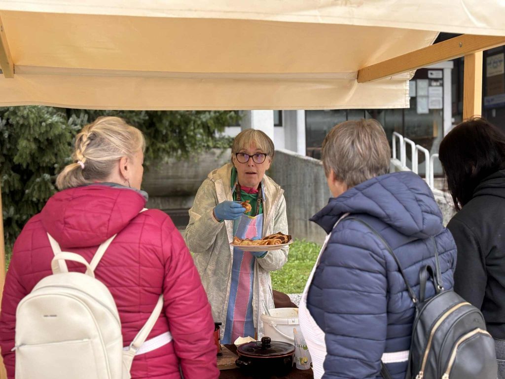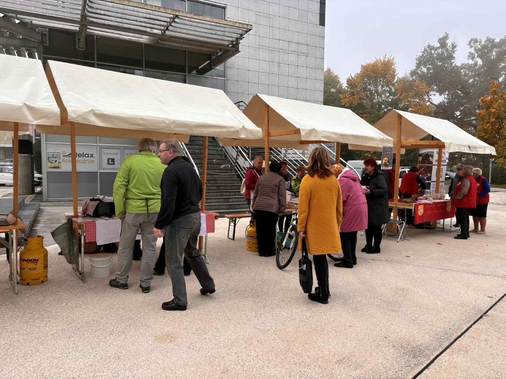 Na stojnicah so se dogajanju na mestni tržnici pridružila lokalna društva, ki so razvajala brbončice obiskovalcev in popestrila sobotno dopoldne v središču mesta.
