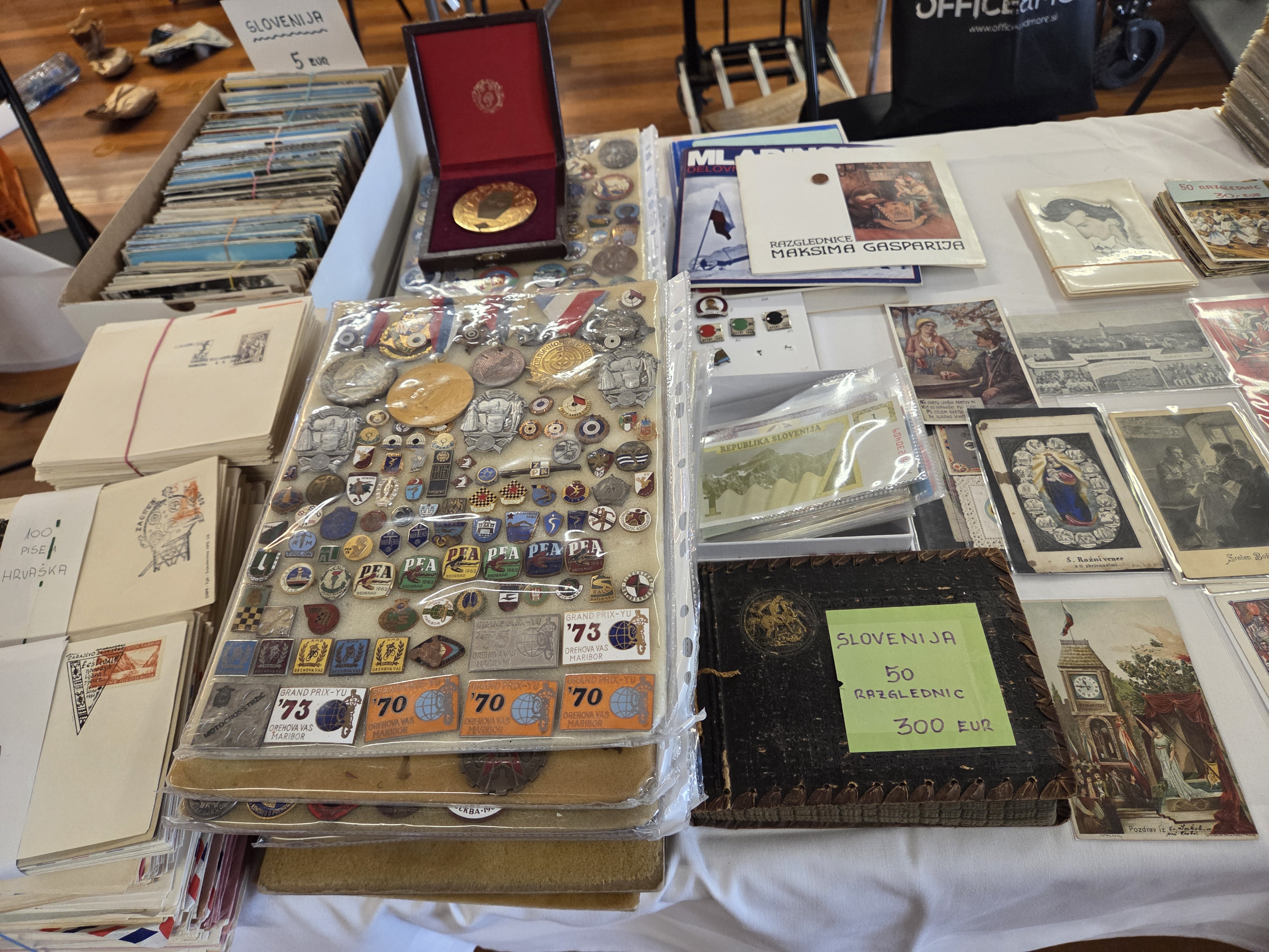 Z zbirateljskimi dobrinami so tudi letos postregli prodajalci in zbiratelji od blizu in od daleč, na njihovih mizah pa je bilo mogoče najti vse od redkih kovancev in bankovcev do filatelističnih raritet, značk, starih razglednic, pa tudi različnih ostalih spominkov z zgodovinsko vrednostjo.